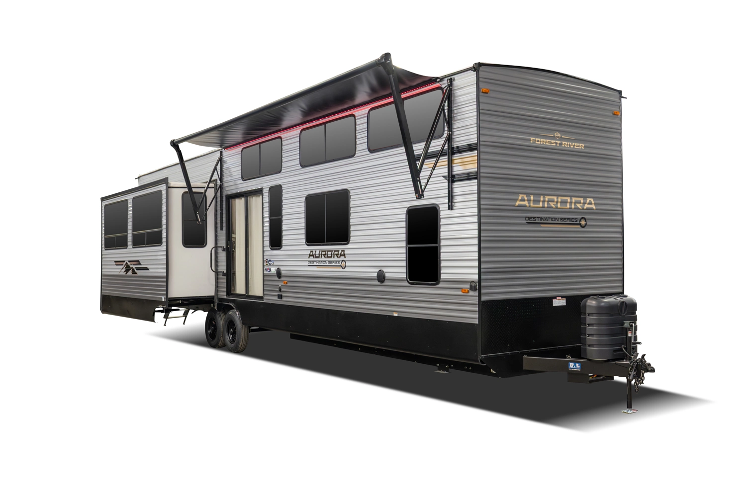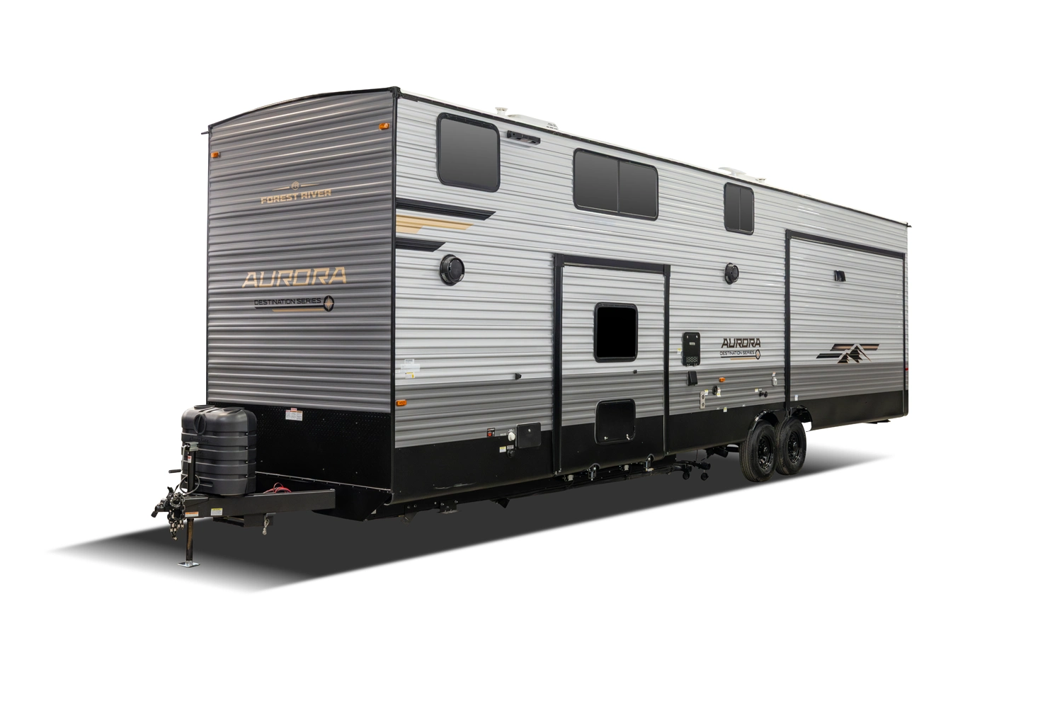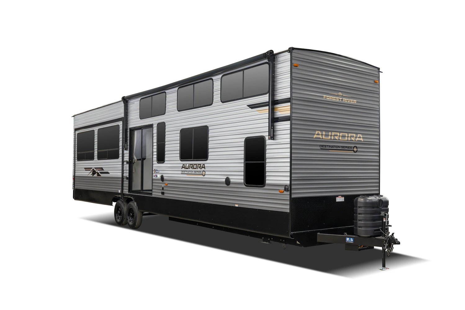 Aurora Destination Series trailers are built for RV travelers who want space, comfort, and the freedom to settle into their favorite outdoor locations for extended periods. These destination units provide generous interiors, durable construction, and dependable features that support long stays at campgrounds, lakeside sites, or seasonal retreats. The Aurora Destination Series encourages travelers to slow down, enjoy nature, and embrace the RV lifestyle with setups that feel solid and secure. Strong materials, practical layouts, and the reliability of Forest River give owners the confidence to stay out longer and immerse themselves in the outdoors.