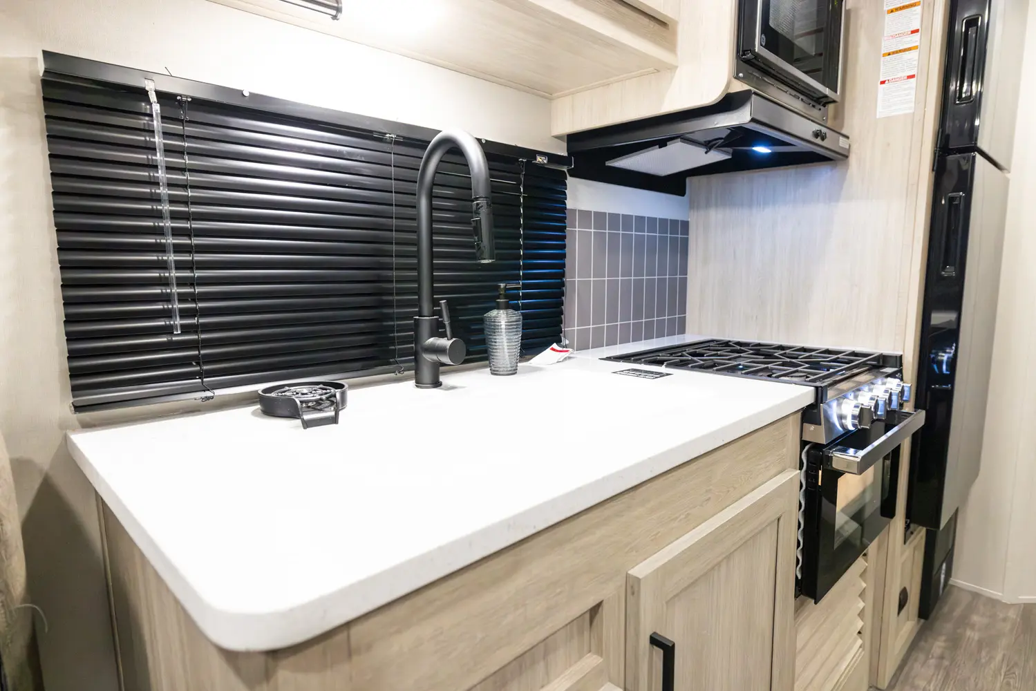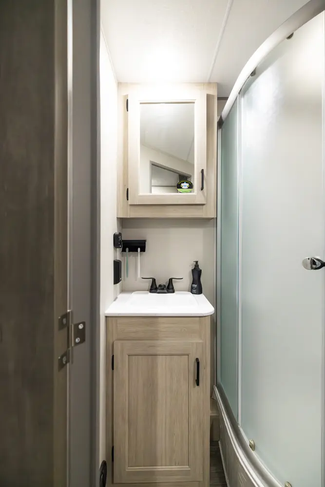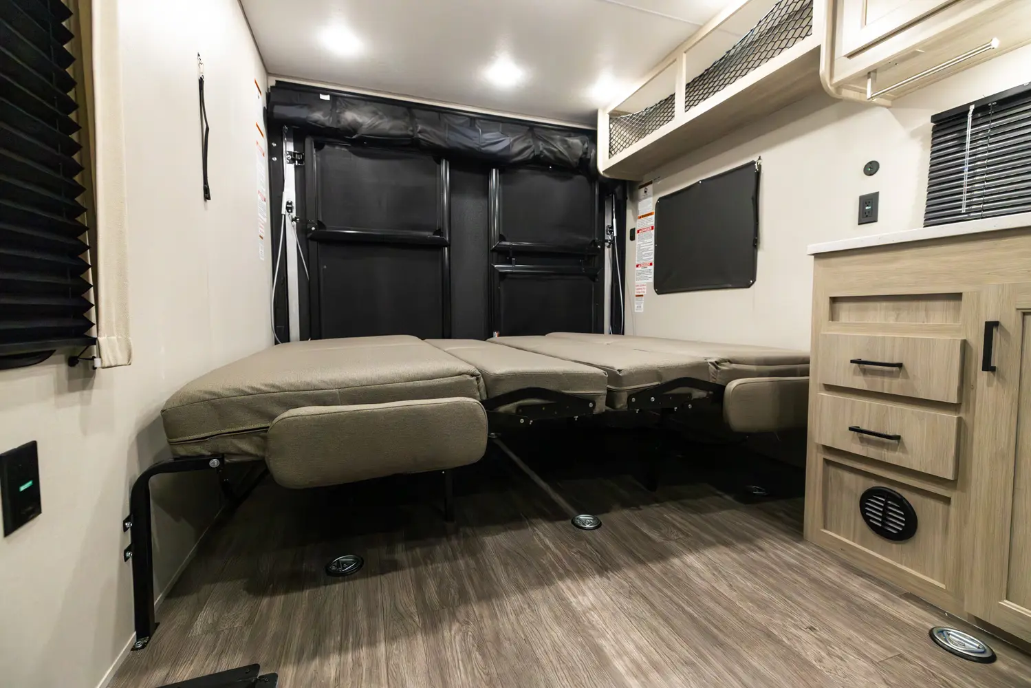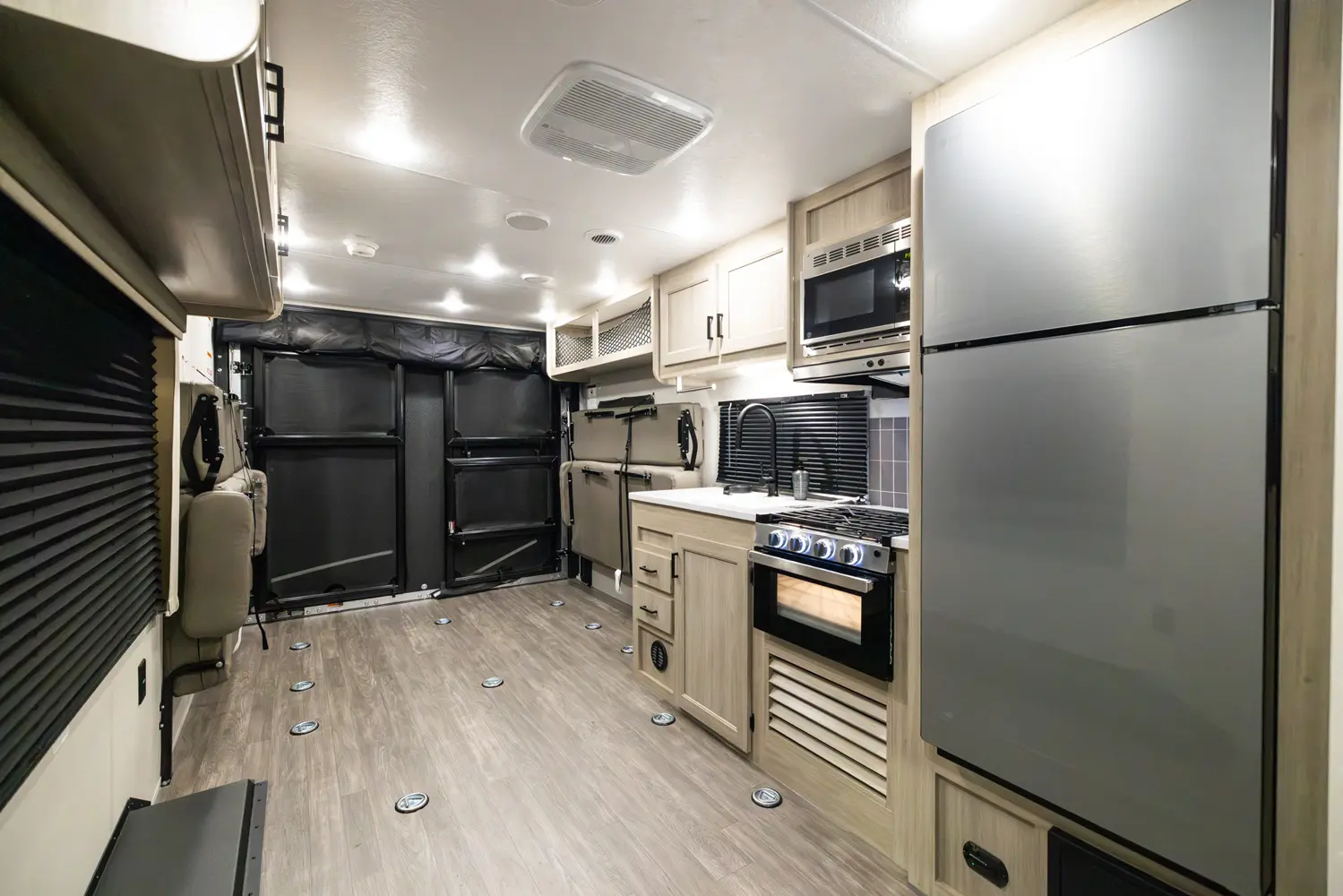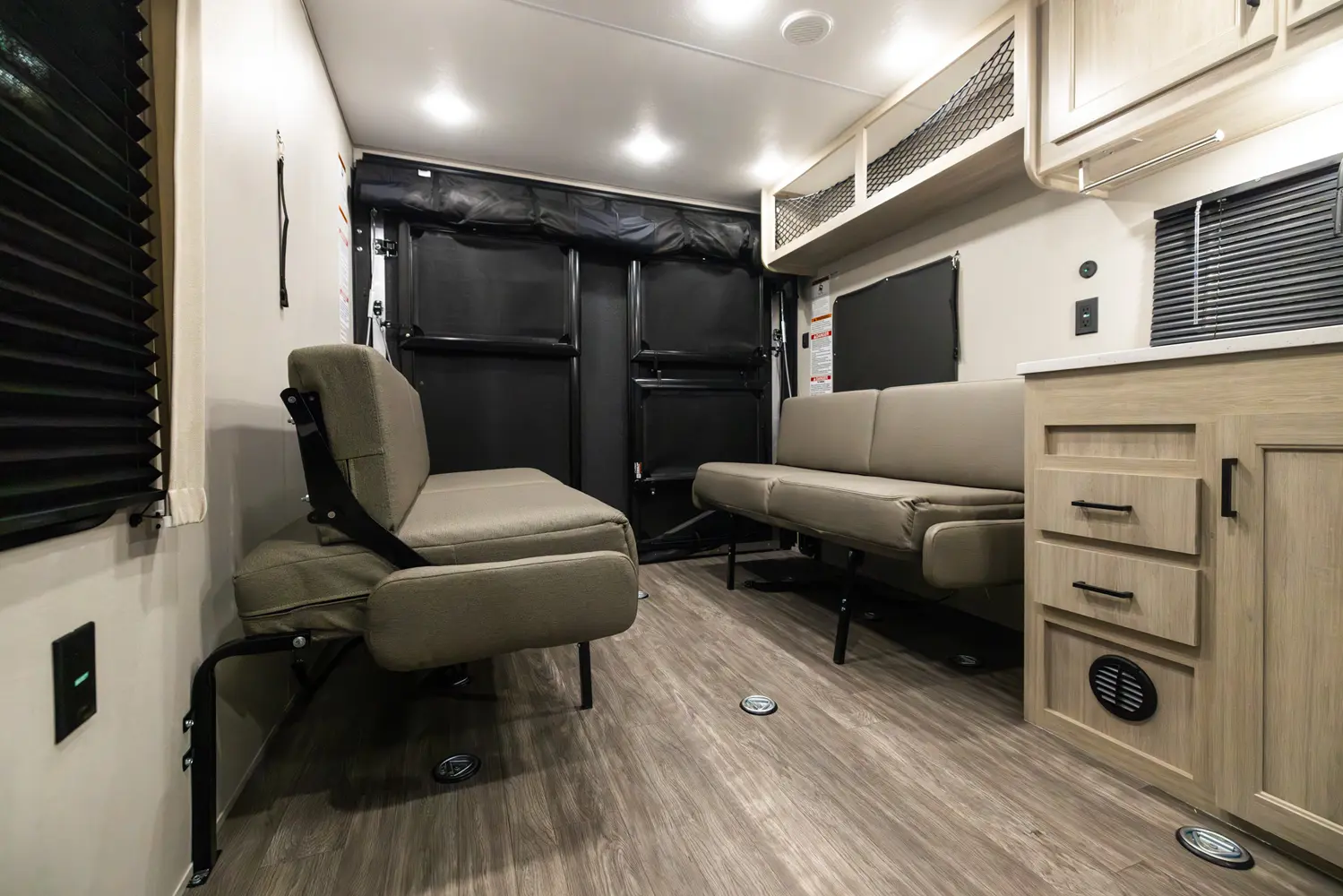 Compact yet capable toy hauler that lets you bring bikes, kayaks, or off-road gear while still offering basic living amenities. Perfect for outdoor enthusiasts who want gear-ready freedom and the ability to camp off-grid or near trailheads.