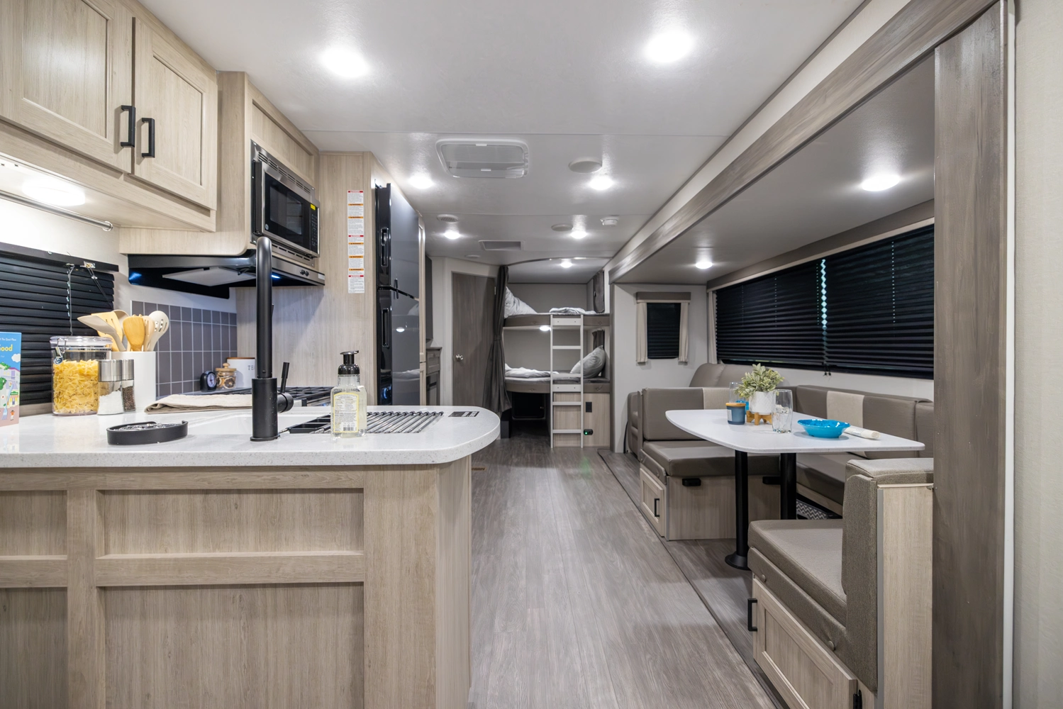 This layout suits larger crews or families who want more sleeping options and living space. Ideal when you want to travel together but still have room for gear, meals, and downtime after hikes, fishing, or lakeside swims.