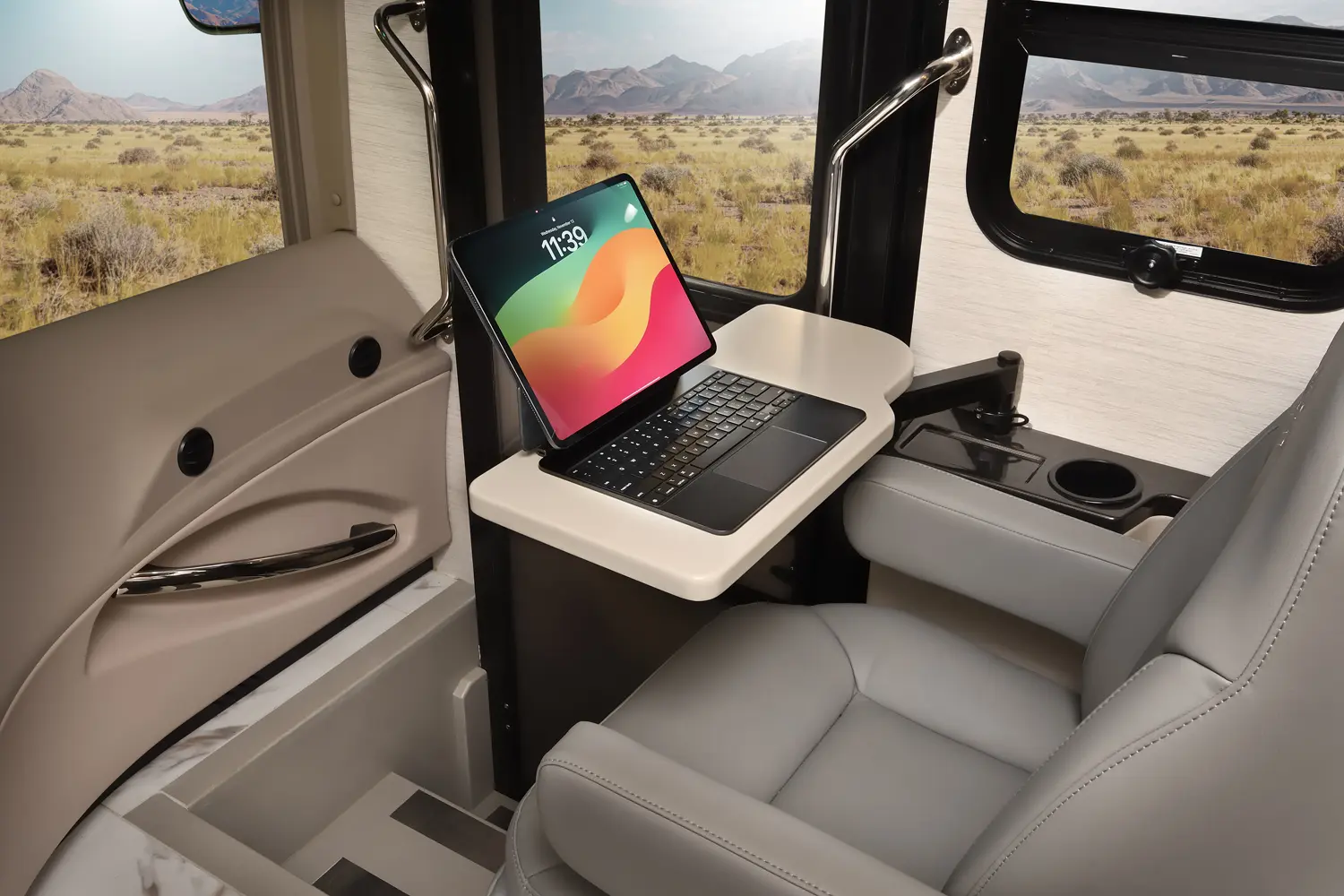 Experience luxury RV travel in a manageable size with the Berkshire 34B by Forest River. This Class A motorhome features three slides for ample space, a king-size Tilt-a-View bed, and a well-equipped kitchen. Perfect for comfortable and stylish road trips.