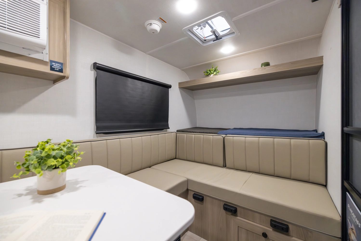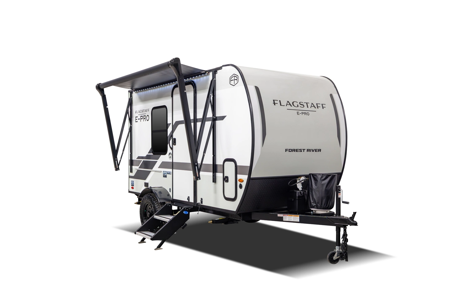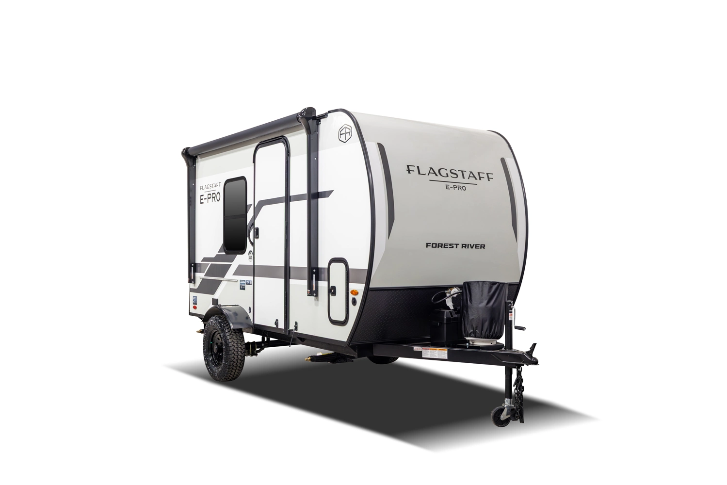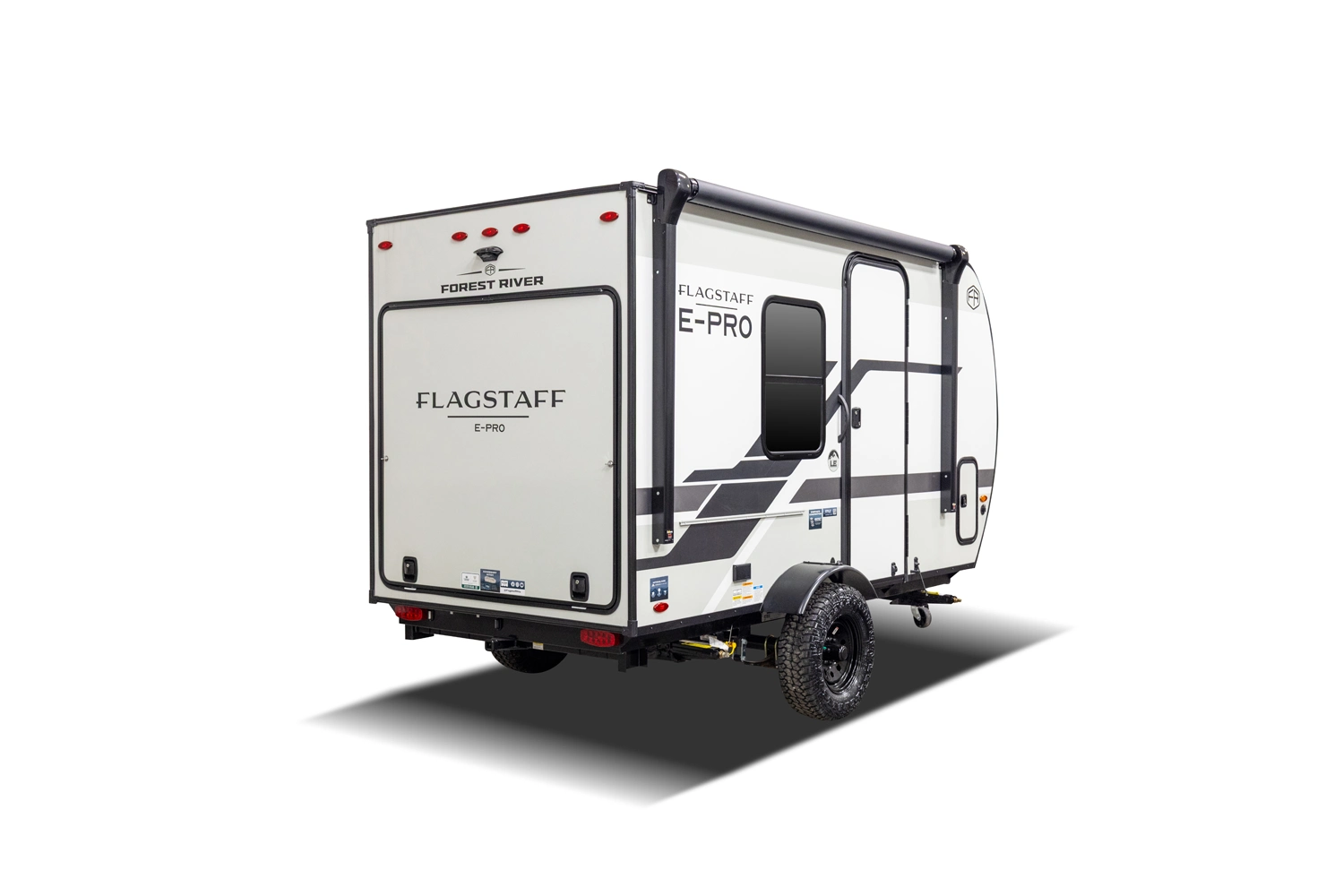 The E-Pro 11LE is an affordable lightweight camper designed for simple, practical camping. Built with aluminum framing and vacuum bonded walls and roof, it delivers durability without adding unnecessary weight. Inside, the massive 54" x 91" U-shaped dinette converts into a spacious sleeping area, while two interior bunks provide additional sleeping space. A convenient rear outdoor kitchen makes cooking at the campsite simple and easy.