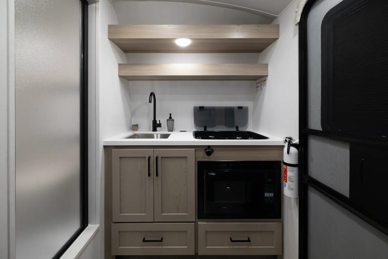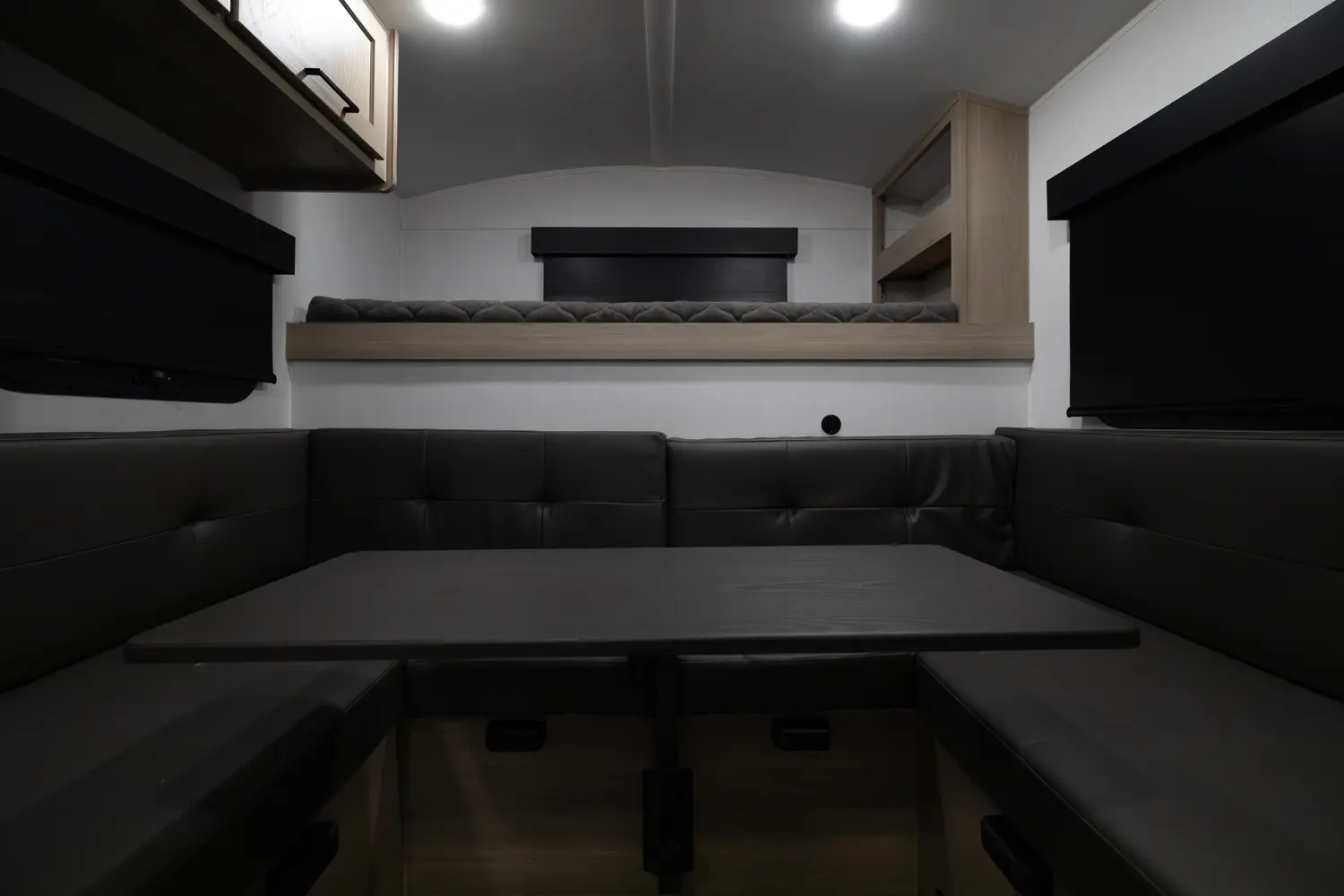 The 15RDG Offers a huge 80" by 54" U-shaped dinette that converts to a bed. A flip-up bunk that doubles as shelf storage when not in use. A thoughtful convection microwave, sink & stove top inside as well as a massive outdoor rear kitchen. With the convenience of a wet bath this model delivers comfort, versatility and fun wherever the road takes you.
