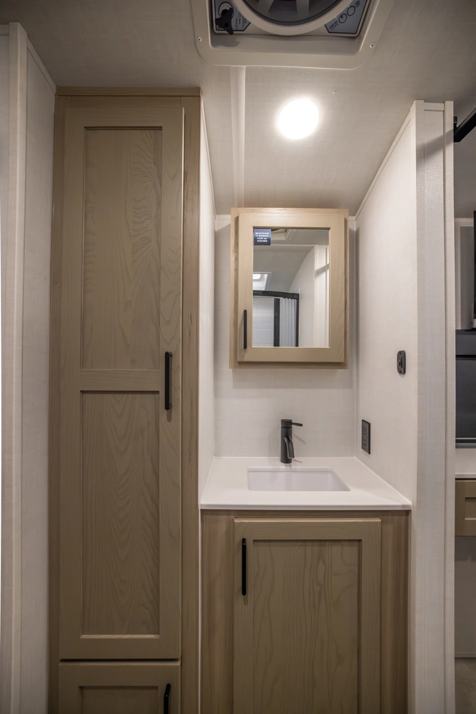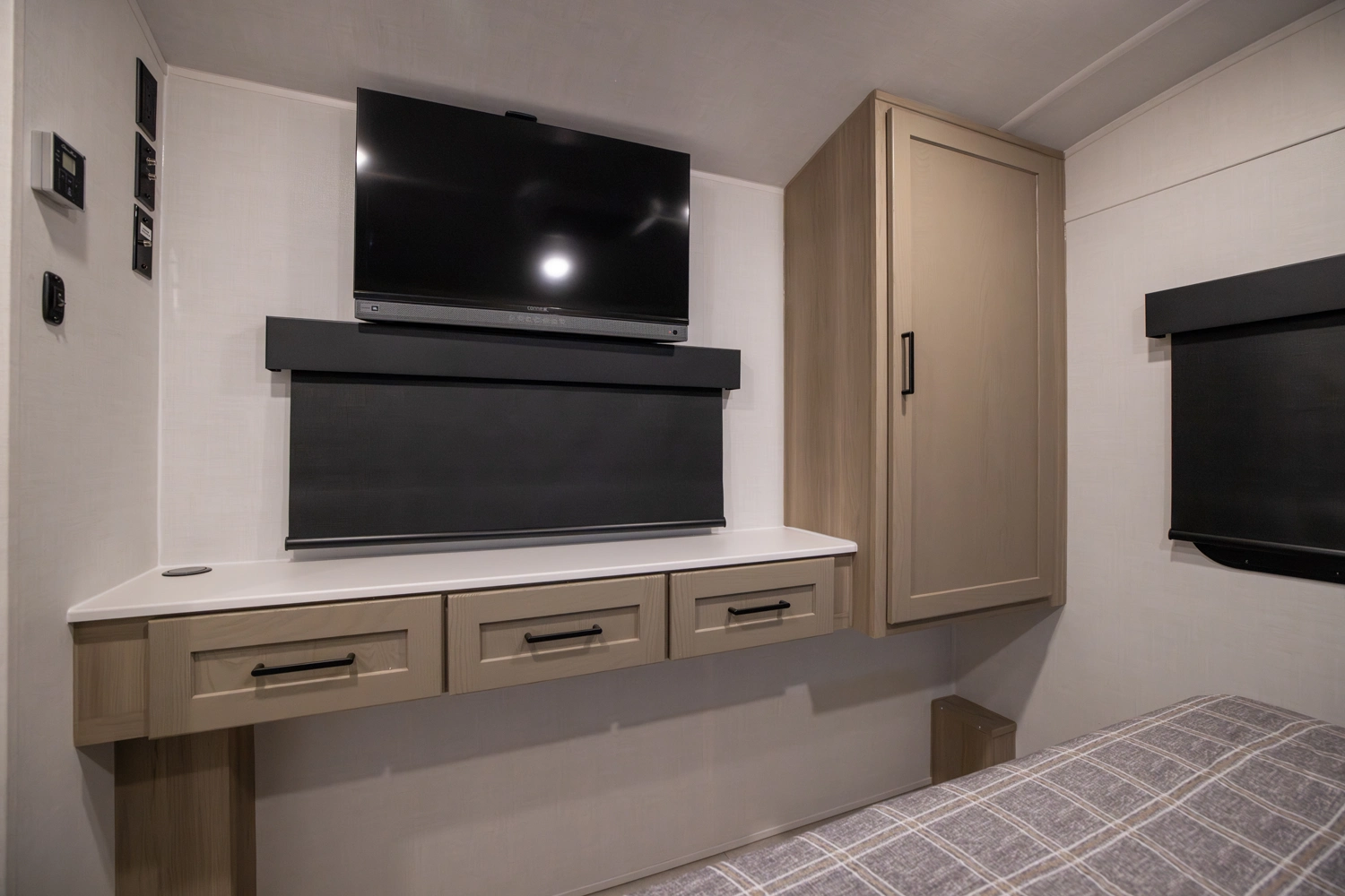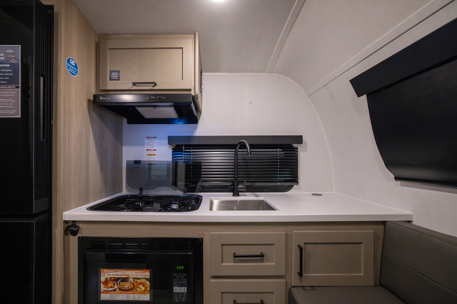 Introducing the 20BS-the first E-Pro with a bed slide! This floorplan brings space and comfort to every adventure. This lightweight travel trailer features 2 all new 10K BTU air conditioners for exceptional cooling wherever you go. With a smartly designed kitchen, versatile living area, and clever storage solutions, the 20BS combines innovation and convenience, making it the perfect companion for campers who want to maximize comfort in a compact, adventure-ready package!