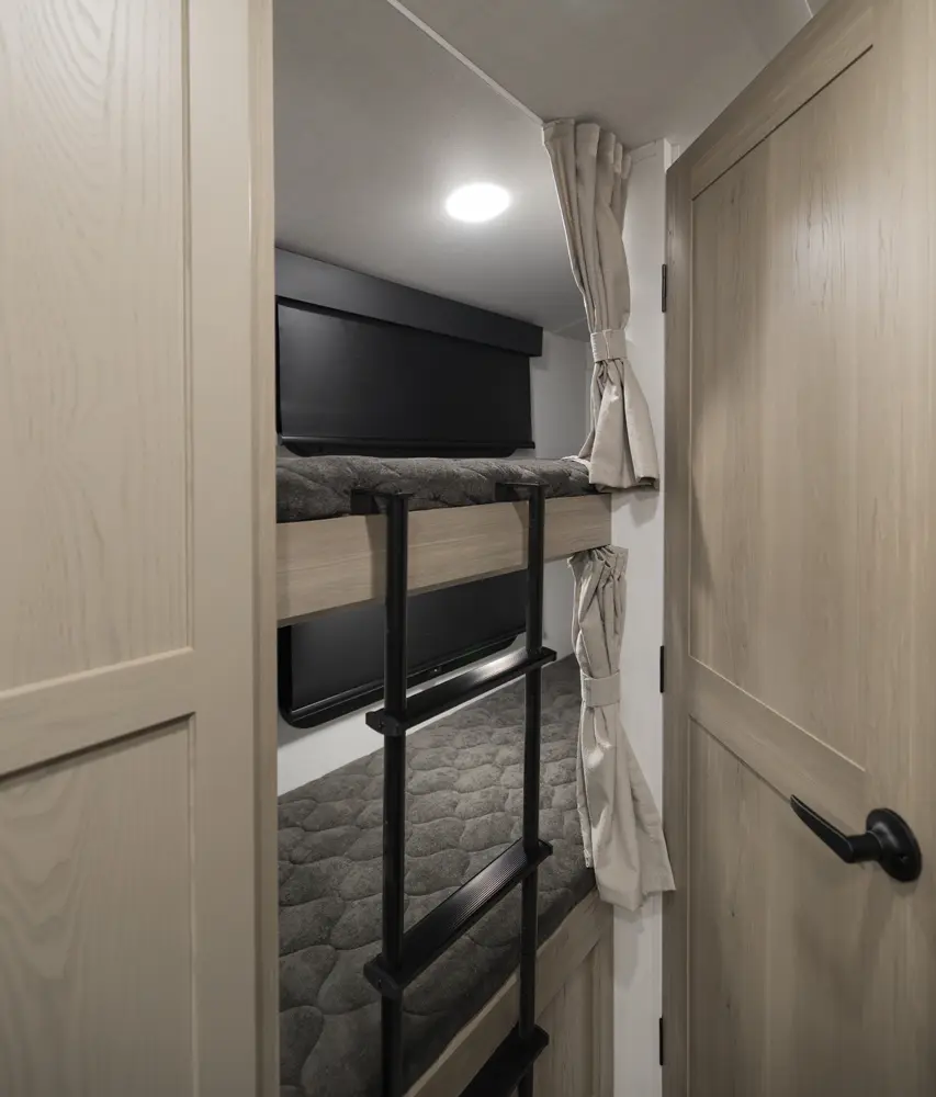 The Geo Pro 20BH is a lightweight bunkhouse designed for adventure. At just over 21 feet long, It’s easy to tow while still offering sleeping space for the whole family. It features rear bunks and a versatile dinette. The functional kitchen, modern interior, and standard off-grid features like a roof-mounted 200-Watt solar panel paired with an 1800-Watt inverter makes the 20BH a perfect option for campers you want comfort capability and freedom to explore.