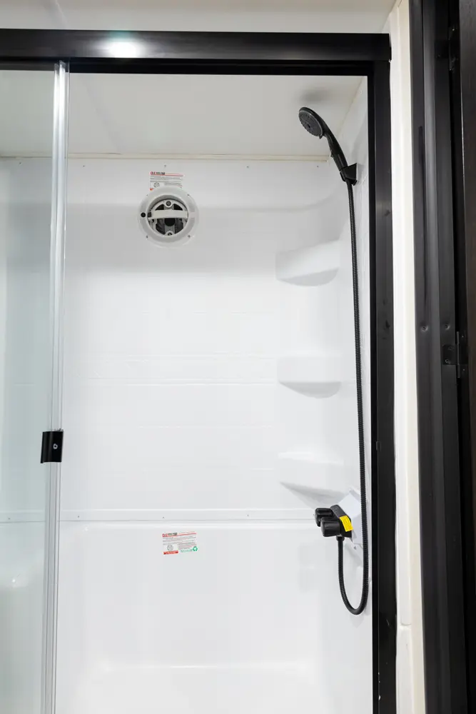 • Blackout Glass, Safety Slam, Friction Hinge Entry Door with Window and Shade Prep (N/A on LP models)